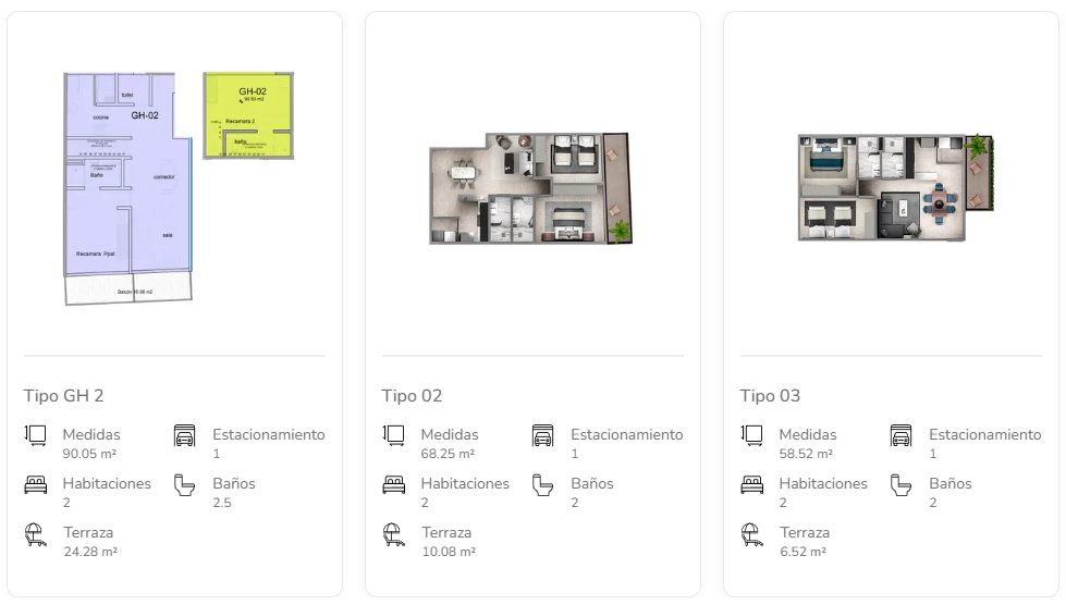 Property Size Metros habitable desde 58.52 a 90.05 m2